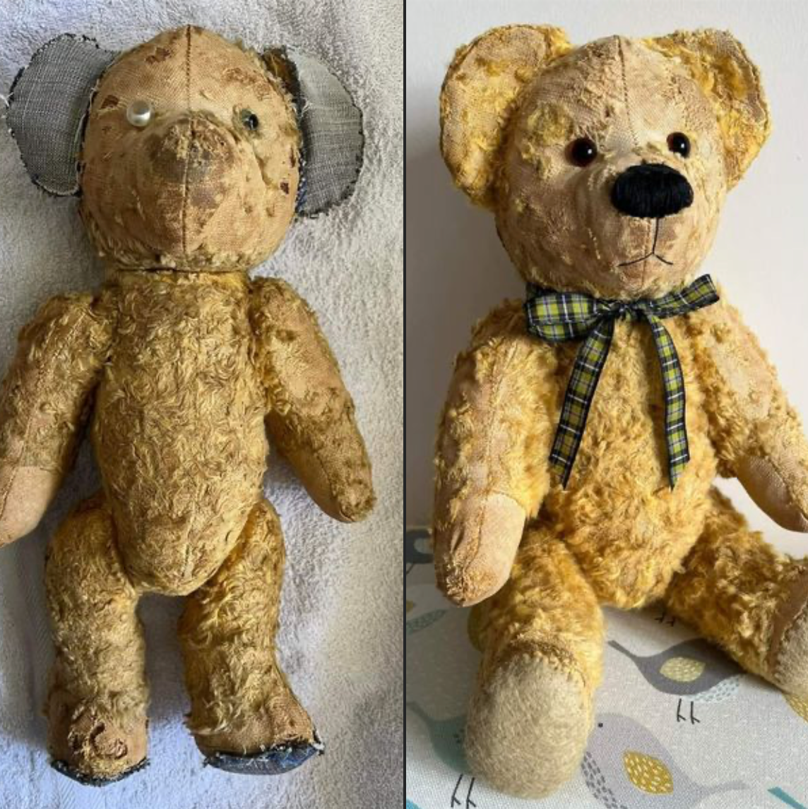 We use traditional methods of cleaning and repair to maintain the appearance of the original Teddy Bear and not to make them look like 'new', but simply the best version of themselves.